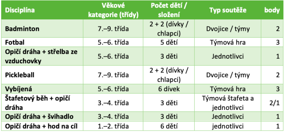 Březen 2026 - aktivní příprava akce (zápis dětí na jednotlivé disciplíny)